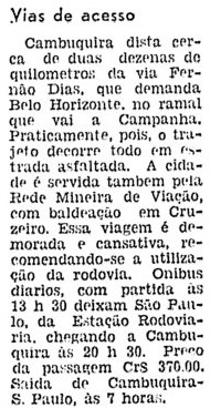 reportagem sobre a cidade de Cambuquira em 1961, citava-se