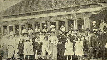 ACIMA: Carro da E. F. Muzambinho e populares na estação de