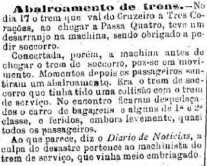 AO LADO: Abalroamento de trens em Passa-Quatro (A Provincia de S. Paulo, (24/12/1895). |