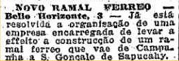 constituíram uma empresa para construir o ramal até Campanha. Os trabalhos