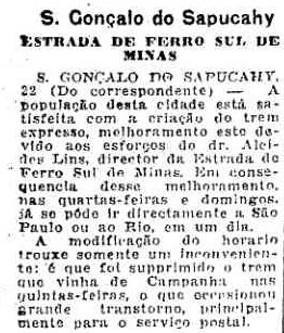 privilégio por ser de São Gonçalo do Sapucaí, ramal da RMV