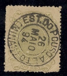 ACIMA: Carimbo postal da estação de Pouso Alto,