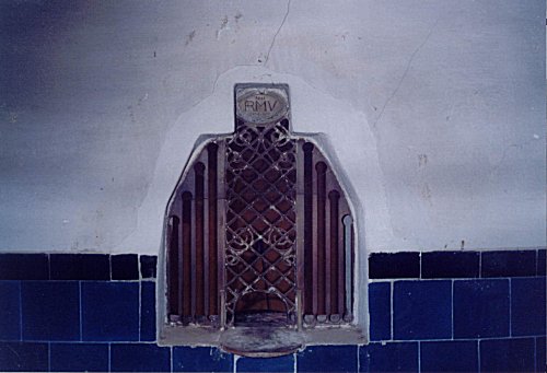 há um salão onde funcionava o almoxarifado. Um enorme portal,