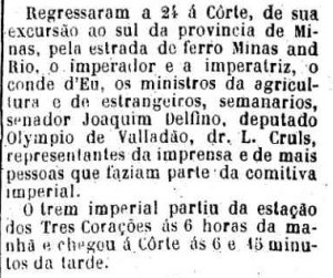 AO LADO: Dom Pedro II e familia inauguram a estação e a linha até Cruzeiro (A Provincia de S. Paulo, 26/6/1884). |