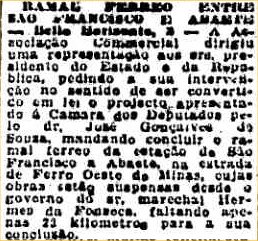 sobre um ramal de Abaeté à cidade de São