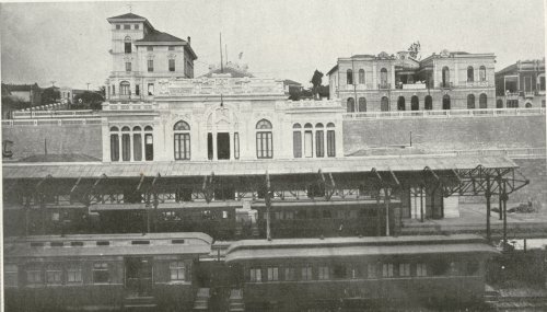 A estação original da EFOM. Foto de antes de 1920.