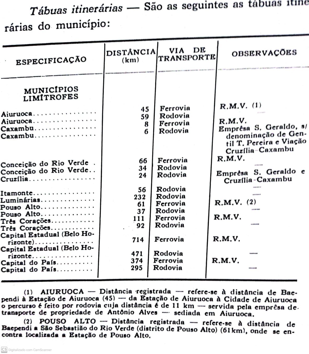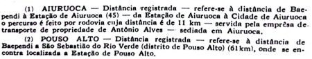 município de Aiuruoca. Estava situada a 11 km da cidade, por estrada rodoviária (ver caixa abaixo, de 1955).