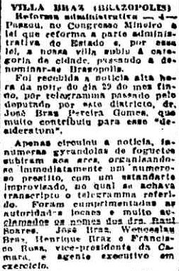 O nome foi alterado em 1923 para Brazopolis - ou Brasópolis