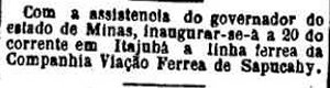 AO LADO: O então Presidente do Estado de Minas Gerais Cesario Alvim viaja para assistir à inauguração da estação (O Estado de S. Paulo, 20/9/1891). |