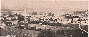 Acima: Fábrica de tecidos da Companhia Mercantil Mineira; Praça