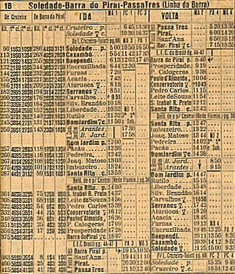 Os horários do trem de passageiros no Guia Levi de 1941 no