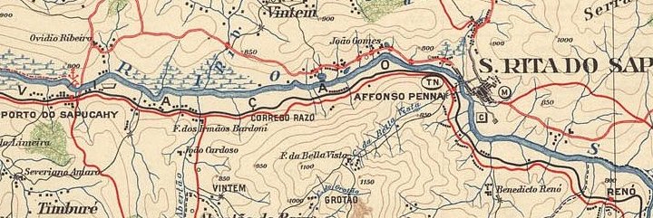ACIMA: Linha (em preto) da V. F. Sapucaí em 1933, mostrando