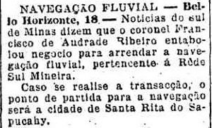 AO LADO: A navegação em Santa Rita do Sapucaí em 1917. A Sul Mineira foi mesmo arrendada? (O Estado de S. Paulo,