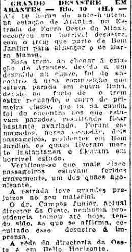 À DIREITA: Desastre em Arantes 11/9/1925.