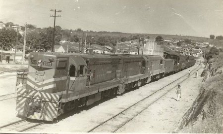 Comboio da RFFSA na estação, provavelmente anos 1980