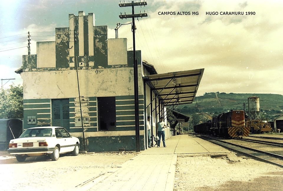 de Campos Altos. À frente, a estação; ao fundo,