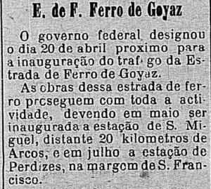 de Perdizes primitiva teria sido inaugurada em 1905 pela E. F. de Goiaz na primeira década do século XX.