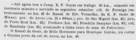 A página no caixa abaixo é totalmente fora de qualquer explicação. Pelo que lê, as estações citadas parecem totalmente fora do que seria a realidade desta linha em 1906. Por outro lado, o caixa abaixo, de 1908, afirma que a estação não tinha sido inaugurada ainda, só o seria em outubro desse ano, e não em 1905.