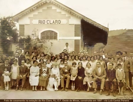 ACIMA: Um casamento na estação de Rio Claro. Foto colorizada por computador. Data desconhecida (Cessão: Luiz Carlos Pereira).