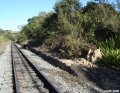 encontrando Araguari. Hoje (2003) a linha, já não mais eletrificada,