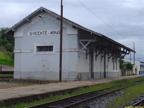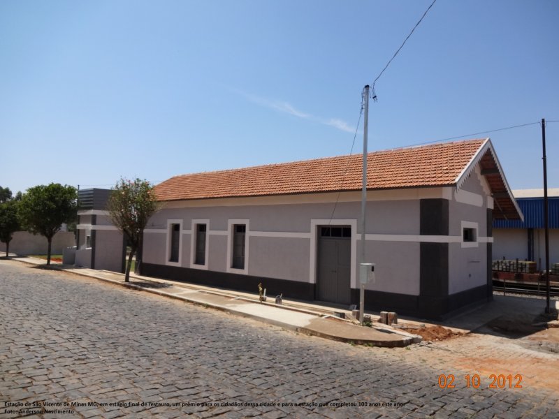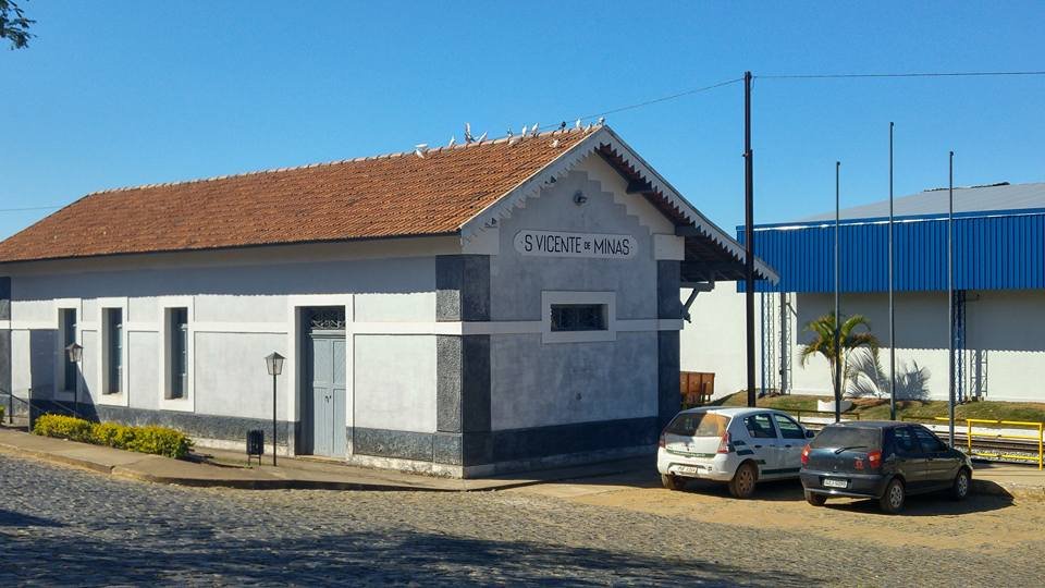Pátio da estação São Vicente de Minas. Em frente está instalada a