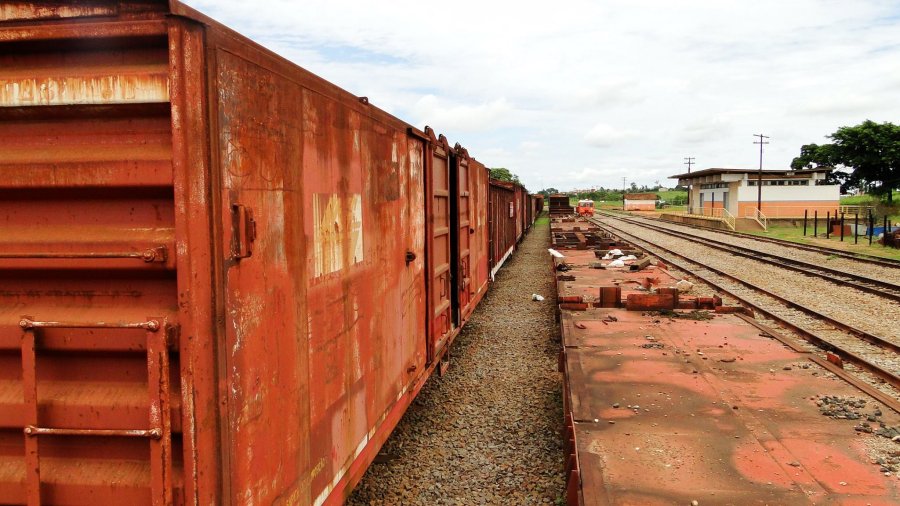 pátio é imenso, mas só havia um vagão. Nada de ferroviários ou outra alma viva além de nos