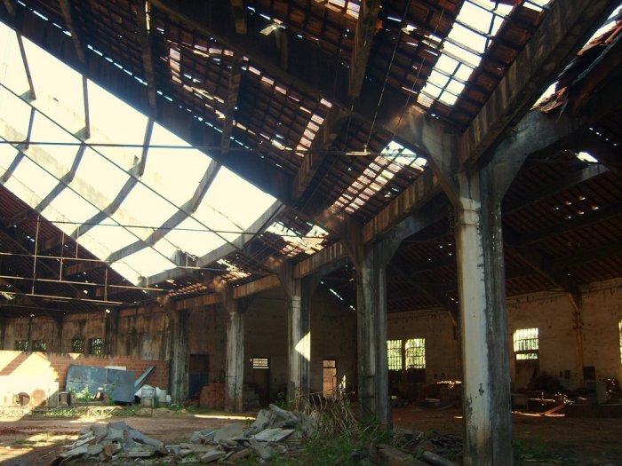Em 2020, o destelhamento continuava. Difícil se imaginar, mas não deve ser mais almoxarifado e sim um prédio totalmente abandonado.