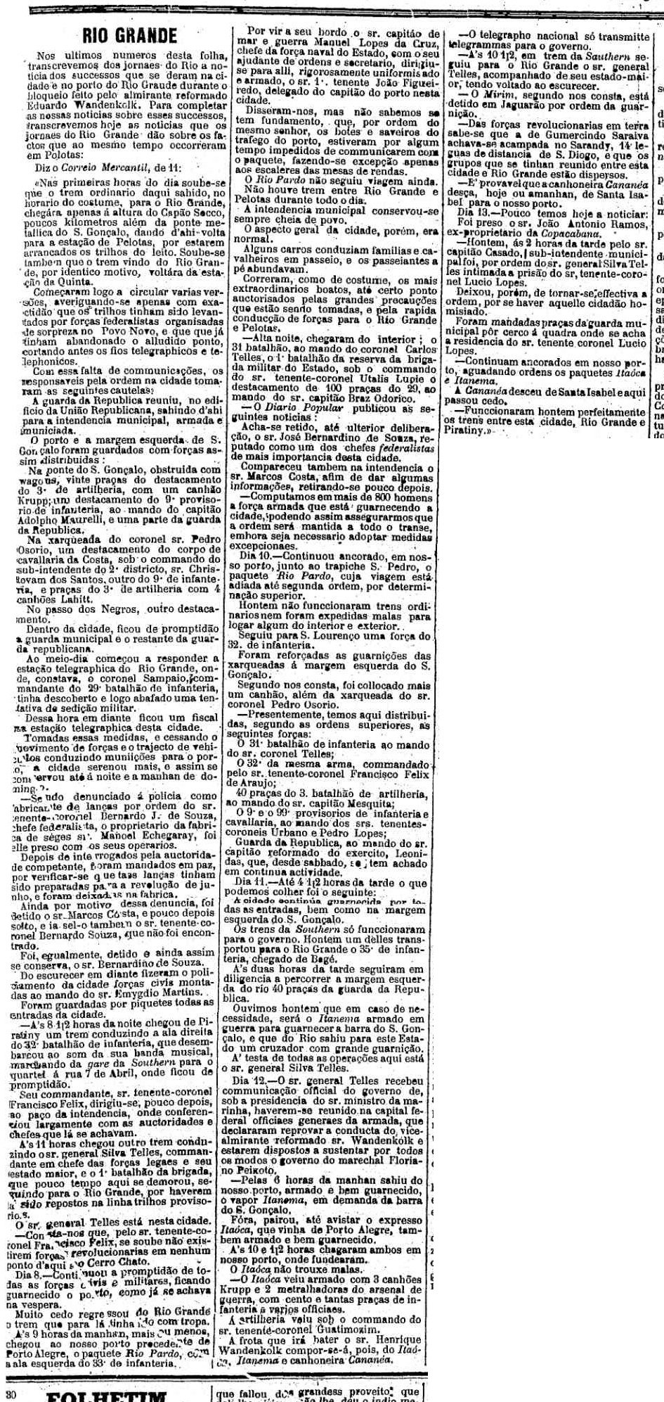 AO LADO: A região de Pelotas durante a revolução gaúcha - CLIQUE SOBRE O TEXTO PARA VER TODA A REPORTAGEM (O Estado de S. Paulo, 25/7/1893). |