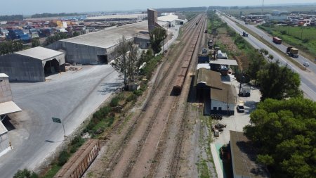 A velha Estação Central de Rio Grande, desativada, fica a cerca de 8 km deste pátio.