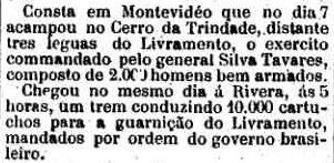 AO LADO: Neste ano a estação ferroviaria de Livramento ainda não existia, mas a ferrovia uruguaia chegava à cidade uruguaia de Rivera, limítrofe com Livramento. Então, na revolução gaúcha que correia solta neste ano, o Brasil enviava munição de guerra para aquela cidade