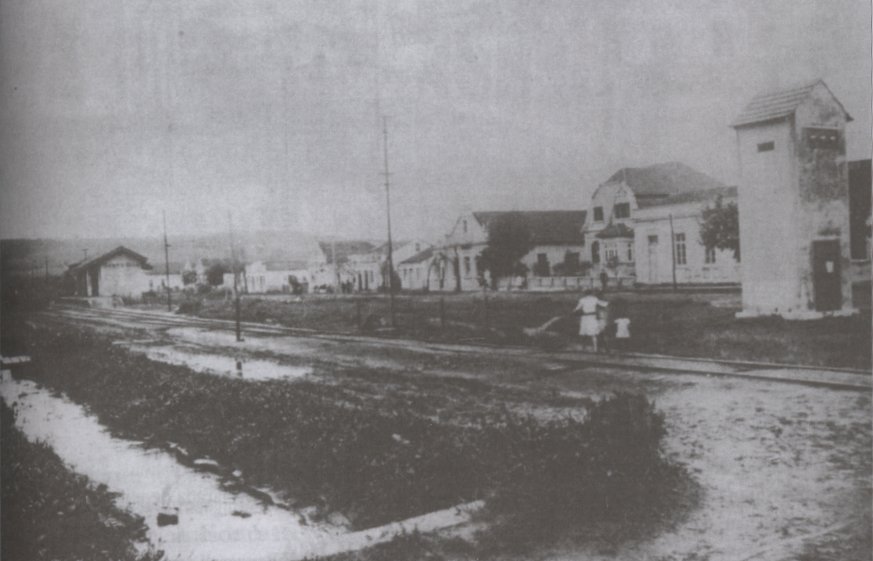 À esquerda, ao fundo, a primitiva estaçãozinha