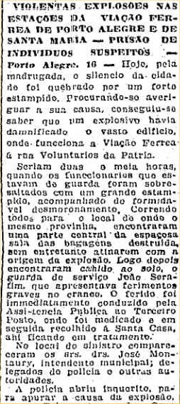 O jornal local Correio do Povo dizia em 9/11/1909 que "Noticiamos,