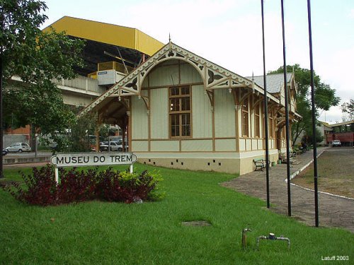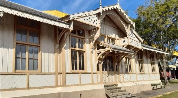 A estação, de madeira, que abriga um museu ferroviário,