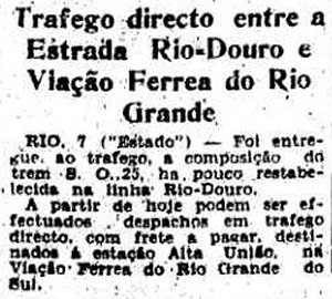 AO LADO: Supostamente, trafego mutuo entre duas feerrovias muito distantes entre s - a VFRGS e a E F Rio de Ouro, esta no RS i(O Estado