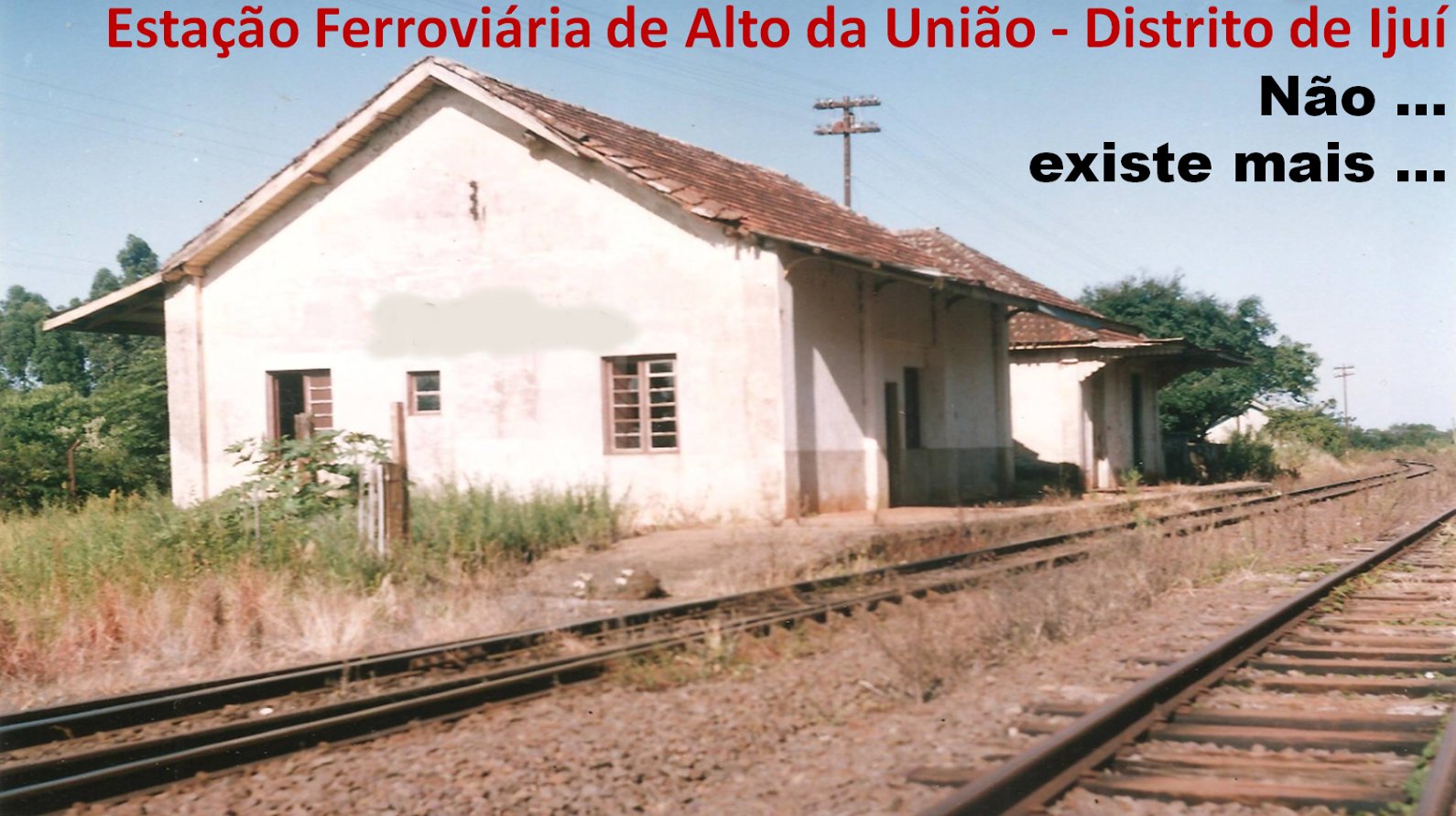 A ESTAÇÃO: A estação de Alto da União foi inaugurada em 1930, segundo Ariosto Borges Fortes. É possível que no local já existisse antes uma parada, a "paradinha", desde 1926, segundo Nillo Grenzel. Sua implantação foi necessária para desafogar a estação de Ijuí na época.