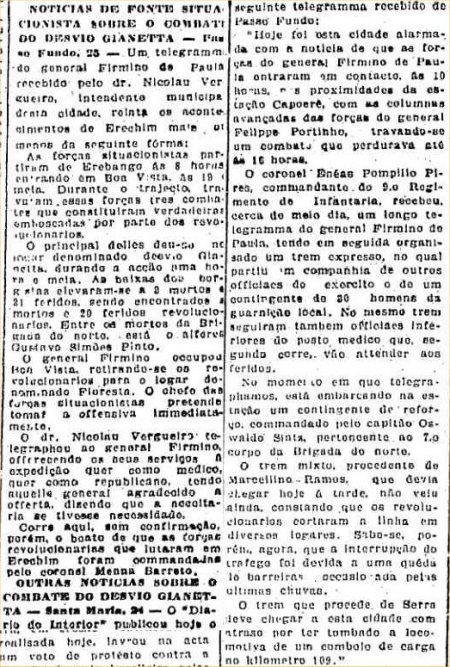 O combate no Desvio Giaretta (O Estado de S. Paulo, 28/6/1923).
