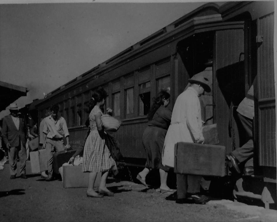 Passageiros embarcam na estação de Santa Barbara em 1958 - cessão Alicio se Assunção.