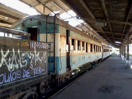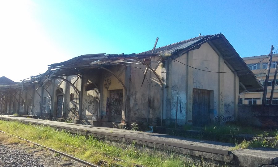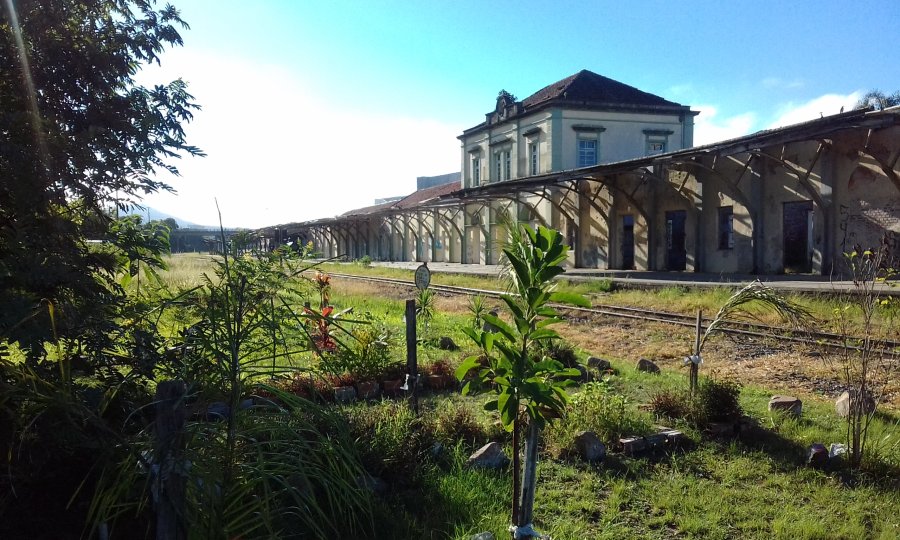 ACIMA: Em 2018, na plataforma da abandonada estação de Santa Maria, podemops ver como é difícil conservar bens históricos, até mesmo tomados (Autor desconhecido).