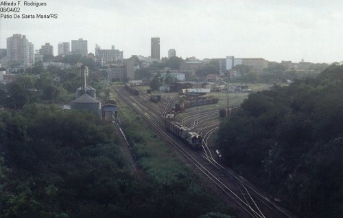 de Santa Maria, por volta de 1998, mostrando diversos vagões