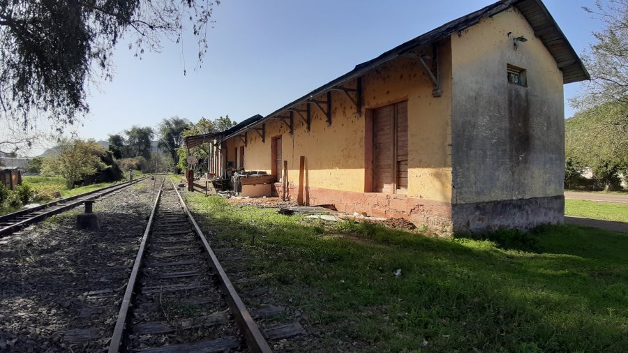 ACIMA: Desvios na estação de Mata em 2019. (Foto: Augusto Taschetto em 20/9/2019.