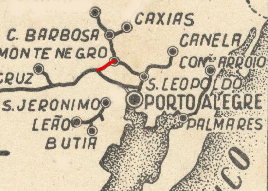na linha férrea em 1938, o trecho Barreto-Montenegro acabou