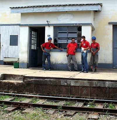 Carros de madeira da antiga RFFSA, em frente à estação,