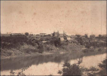 sobre o sistema. Nesta época não existia ainda o ramal brasileiro de Quaraí, embora o lado uruguaio já teria sua lin ha e estação na cidade de Artigas, do lado sul do rio Quaraí, o rio que aparece na foto - CLIQUE SOBRE A FOTO PARA VER EM TAMANHO MAIOR (Autor desconhecido - cessão Gunnar Gil).