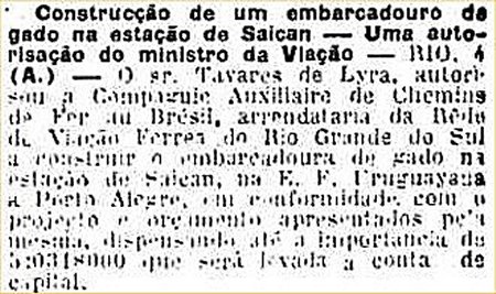 de gado no pátio da estação de Saican em 1916 (O Estado de S. Paulo, 5/2/1916).