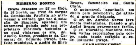 maio de 1894, foi entregue o ramal de Ribeirão Bonito pela Cia. Paulista,