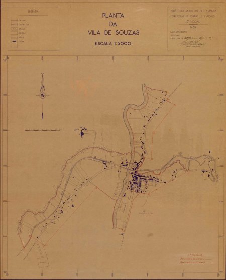 ACIMA: Planta da vila de Souzas em 1939 (CLIQUE