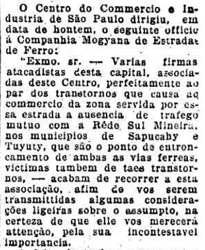 AO LADO: Atrasos na baldeação entre os trens da RSM e da Mogiana (O Estado de S. Paulo, 16/6/1920). |