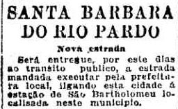 AO LADO: Abertura de estrada ligando a estação a Santa Barbara do Rio Pardo (atual Aguas de Santa Barbara) (O Estado de S. Paulo, 31/5/1934). |