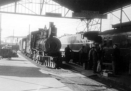 ACIMA: Em foto dos anos 1940 ou 1950, composição chegando do