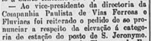 AO LADO: A CP pede ao governo que aceite sua elevação a estação. (O Estado de S. Paulo, julho de 1910. |